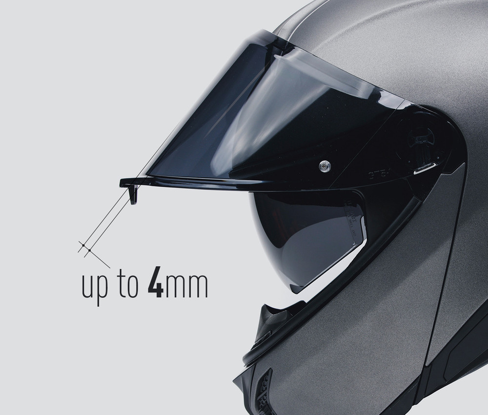AGV独自の機能である"マイクロオープニングシステム"は、バイザーをハーフオープン状態でロックすることができ、ライディング中の適切な通気性を確保します。ヘルメットの内側の空気を調整できなかった頃を覚えていますか?もう、そんな時代ではありません。