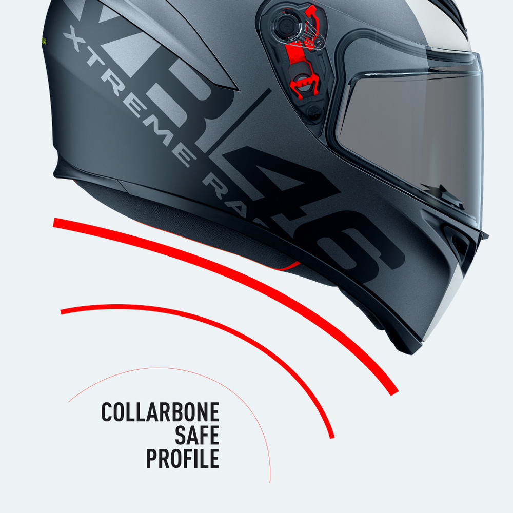 AGV独自の衝撃吸収技術により、直線的な衝撃に対して優れた保護性能を発揮します。