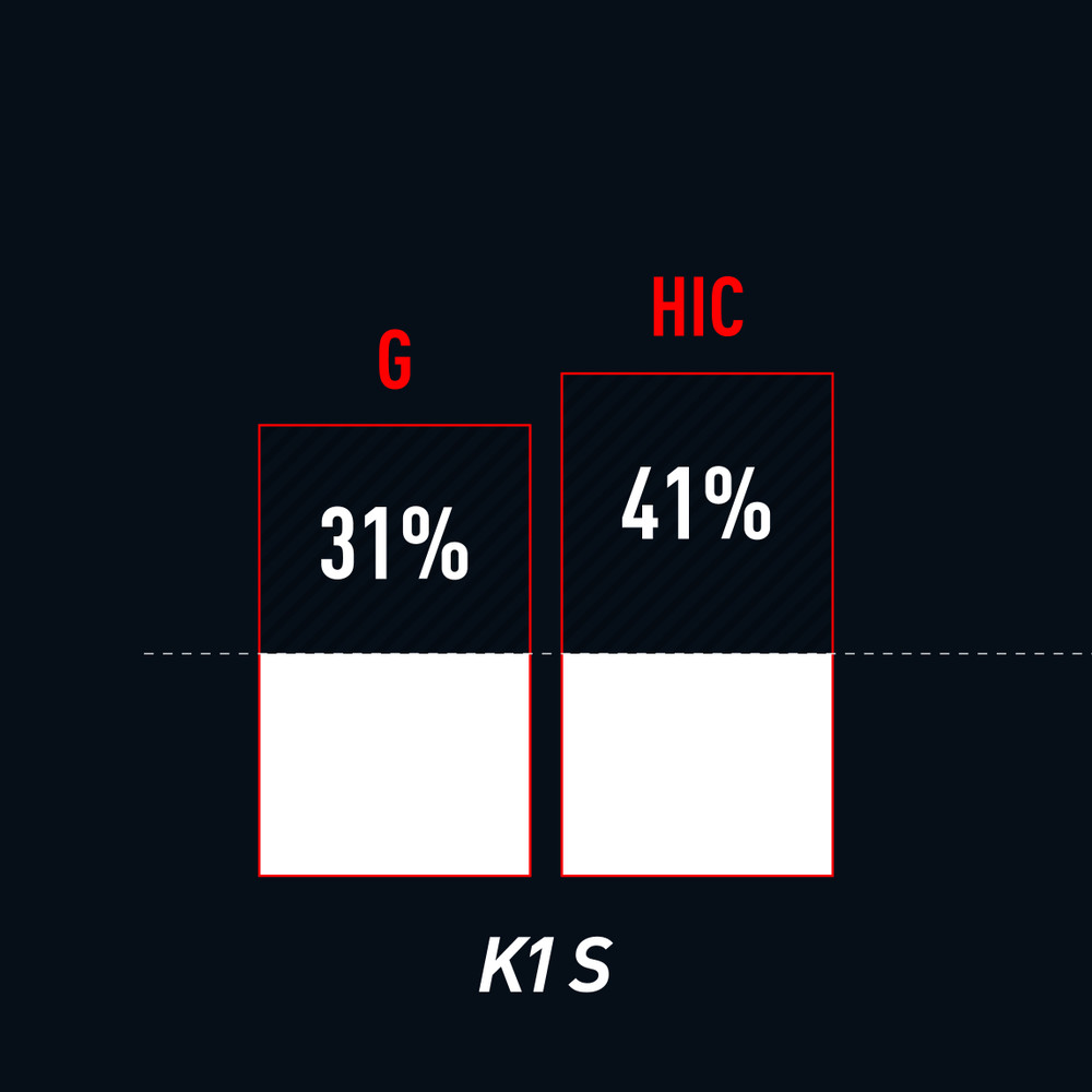1500 G(ファーストシェルサイズ)の衝撃吸収性能を実現。多密度EPSにより、ヘルメットの各セクションを最大限に保護します。