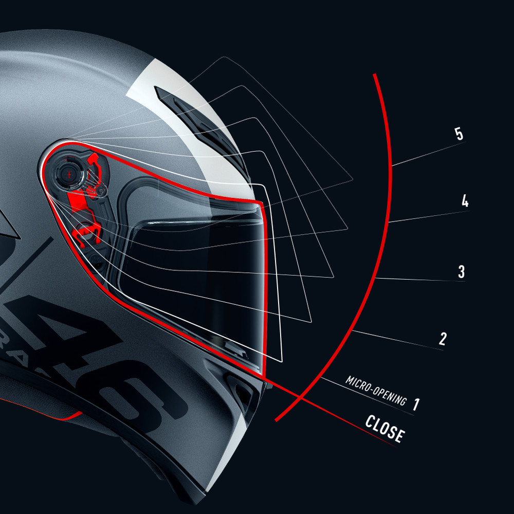 バイザーを数ミリ開けた状態で走行することにより、空気の流れを安全に調整することができます。