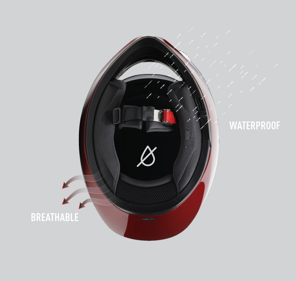 K3の内装は、軽量でソフトな素材を採用しており、スムーズに着脱することが可能です。表地には耐摩耗性と防水性に優れたコーティングを施しており、常に水をシャットアウトします。 また、汗をすばやく吸収し、顔を常にドライな状態に保つことができる、Dry Speed素材を使用しています。