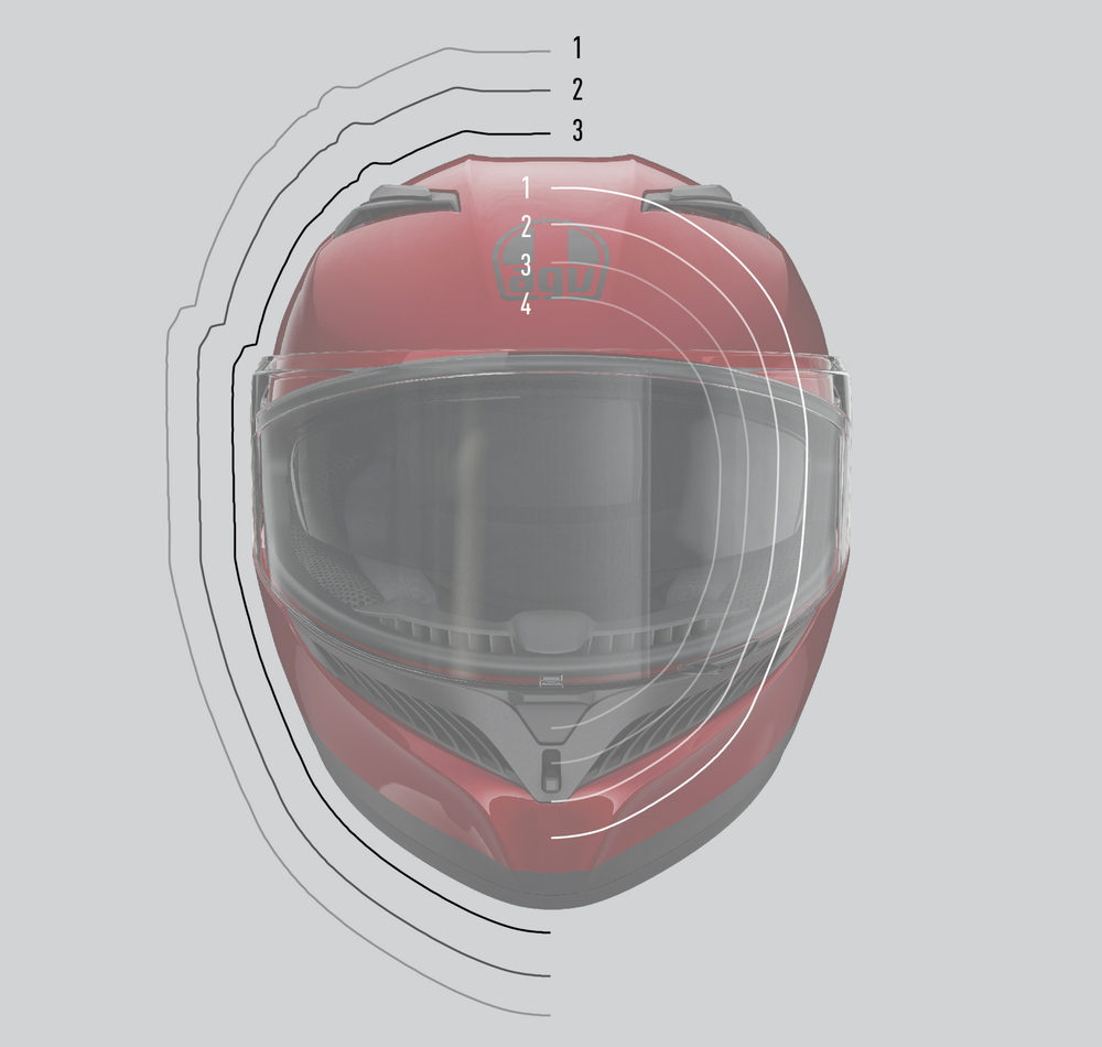ヘルメットの形状は、鎖骨への衝撃のリスクを最小限に抑えるように設計されています。これは、K3を含め、AGVがレースの世界に導入した安全性の基準であると言えるでしょう。