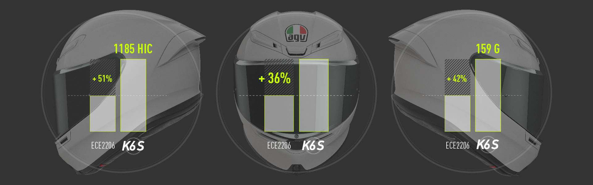 AGV K6 Sは、シティライドからツーリング、そしてスポーツライディングまでオンロードにおける汎用性を追求したモデルです。世界で最も過酷なMotoGP™に挑戦するライダーのために開発された最先端のテクノロジーと素材を使用しています。 K6 Sが提供する安全性、快適性、信頼性、性能は単なる言葉ではなく、ライダーが求める具体的な機能です。あらゆる状況やロードコンディションでも、最高のパフォーマンスを発揮することができます。