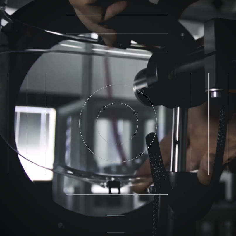 次に、6mmの鋼球を秒速80mでバイザーに向けて発射するというバイザーの耐貫通性試験が行われます。