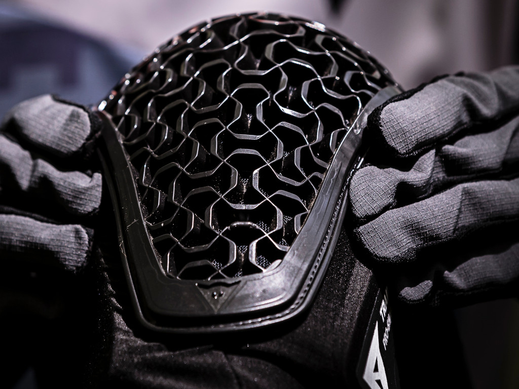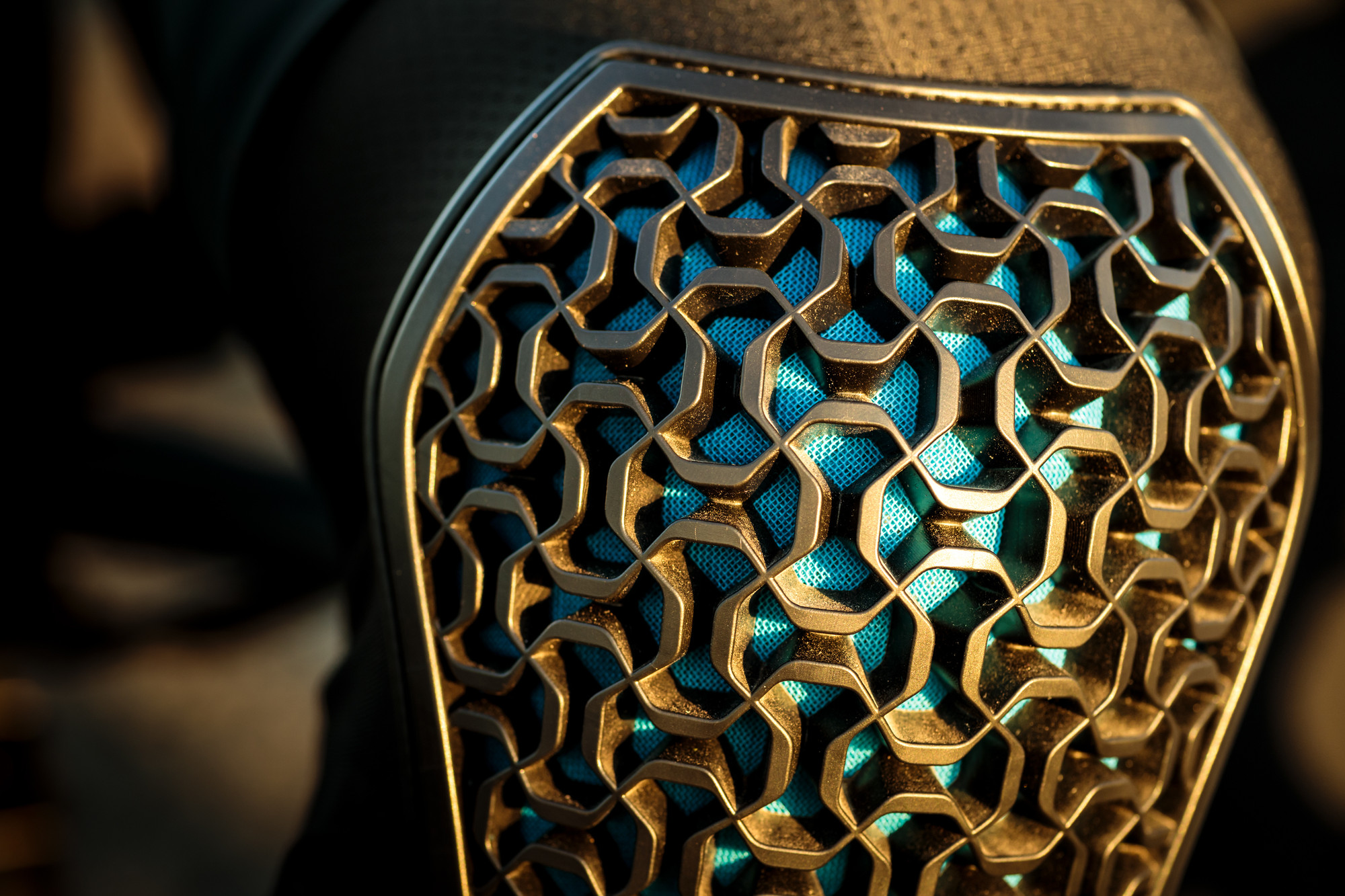 自然界に存在するオーセチック形状をニーガードのデザインに応用することにより、衝撃を受けると硬くなり、引っ張られると全方向に広がる性質が、膝の動きを忠実に再現して自由度の高い動きを可能にしました。