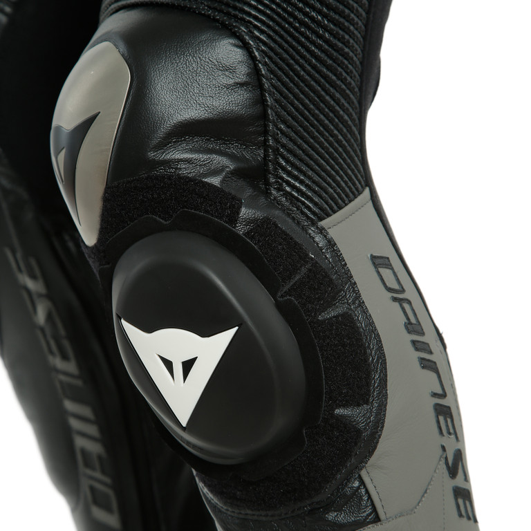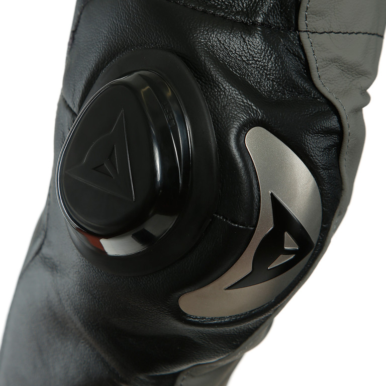 スーツの外側の要所に配置され金属プレートは、転倒時に柔らかいプラスチック製のプロテクターやレザーがアスファルトと摩擦を起こし、関節が詰まって危険なローリングを引き起こす可能性を抑えています。